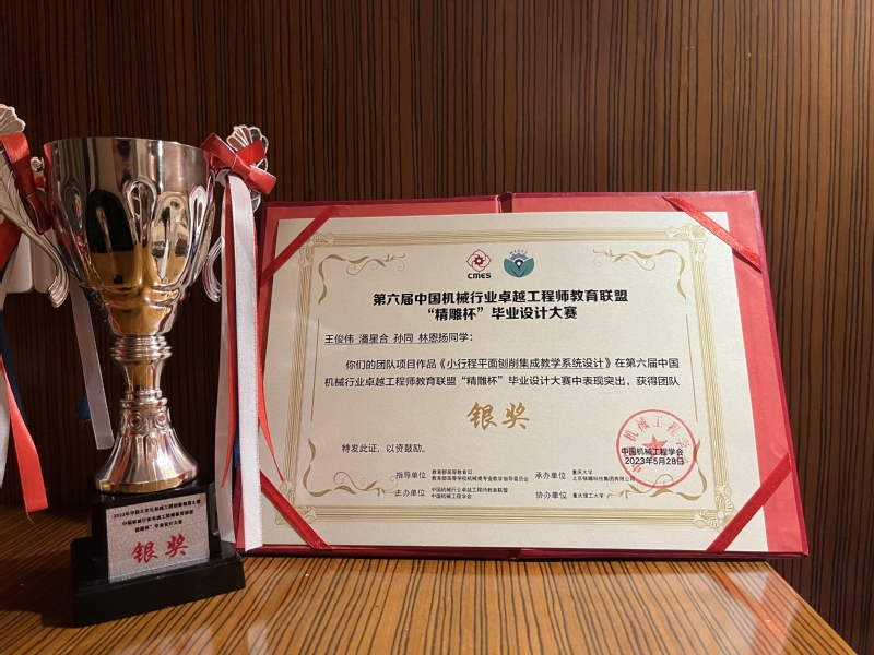 近日,在2023全国大学生机械工程创新创意大赛暨“精雕杯”毕业设计大赛决赛中,我校机械工程学院叶红仙,于保华,张尧(北京启创远景科技有限公司)老师共同指导,王俊伟、潘星合、孙同、林恩扬团队的创作“小行程平面刨削集成教学系统设计”勇夺银奖。大赛其他10项金银奖分别由浙江大学(金奖)、上海交通大学(金奖)、华中科技大学、西安交通大学、南京航空航天大学、大连理工大学获得。